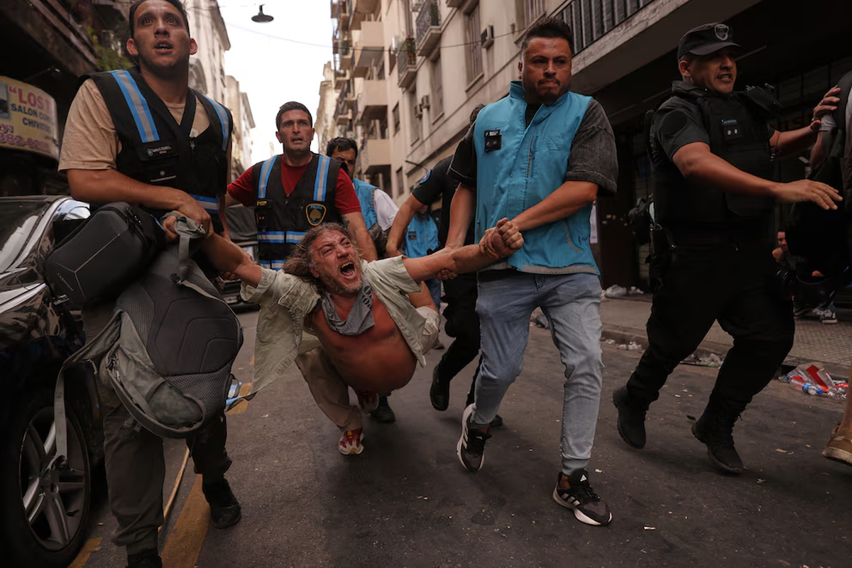 Durante la desconcentración, la Policía de la Ciudad y fuerzas federales avanzaron sobre los grupos que permanecían en la plaza y los desplazaron hacia la zona de Constitución para despejar el área.