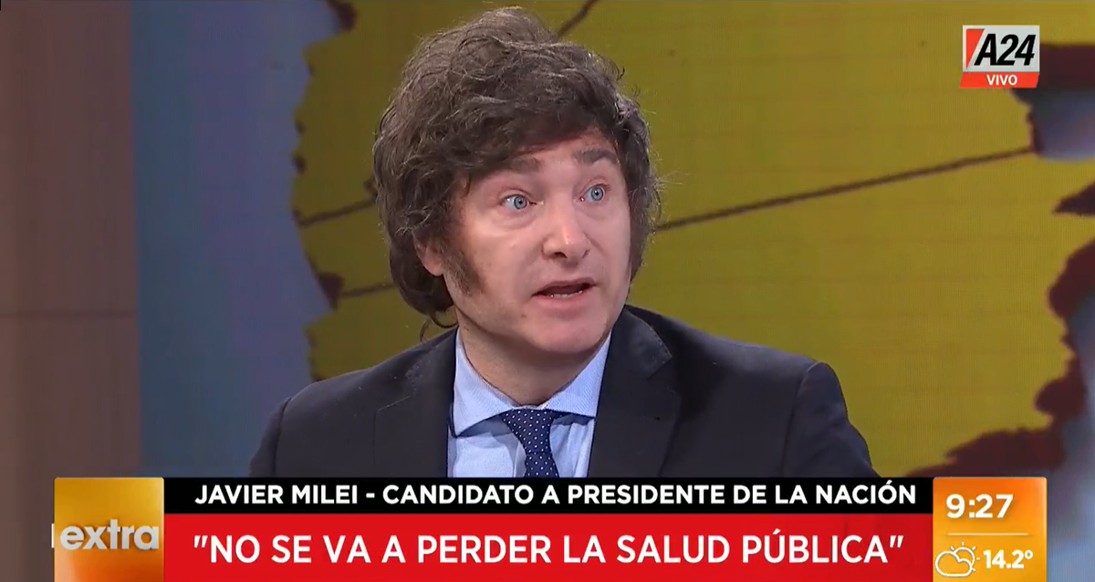 Hay que discutir ideas y no asustar a la gente. Queremos cambiar el modo de financiar la salud. Hay que entender que nada es gratis", sostuvo Milei y agregó durante una entrevista en A24, "vamos a dar los recursos para que vos decidas donde atenderte".