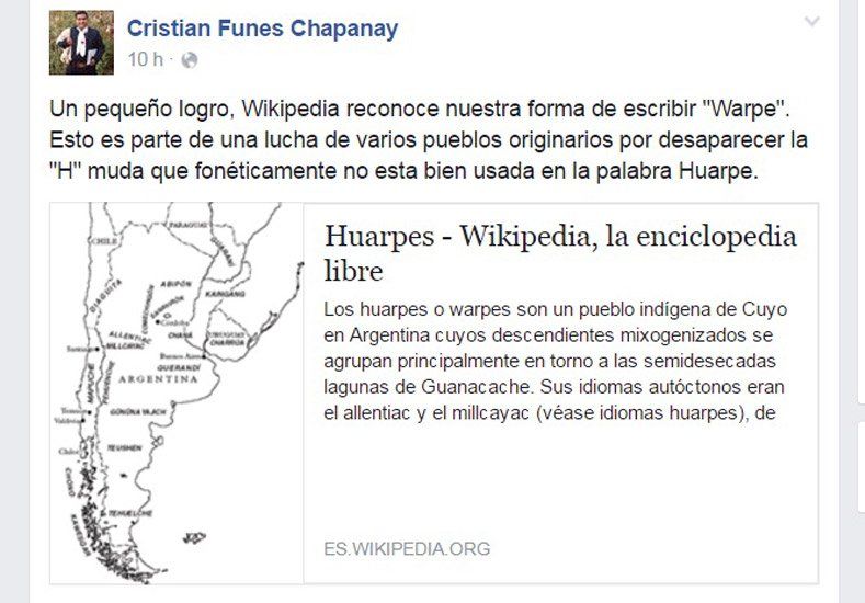 Los referentes de la comunidad Huarpe de San Juan vienen trabajando desde hace años para que el nombre de su pueblo pase a escribirse como Wuarpe y no como tradicionalmente se venía escribiendo.