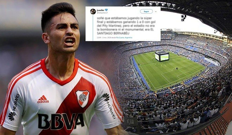 Y, según figura en su red social, el 3 de noviembre posteó: "Soñé que estábamos jugando la súper final y estábamos ganando 1-0 con gol del Pity Martínez, pero el estadio no era la Bombonera ni el Monumental, era el Santiago Bernabéu".