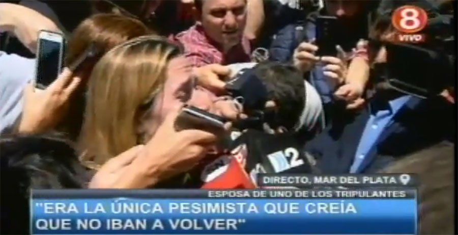 Ariel Torres, enviado especial de Canal 8 y sanjuan8.com se encuentra en la Base Naval de la Armada Argentina y mientras transmitía en vivo para toda la provincia la mujer de uno de los tripulantes del ARA San Juan rompió en llanto.