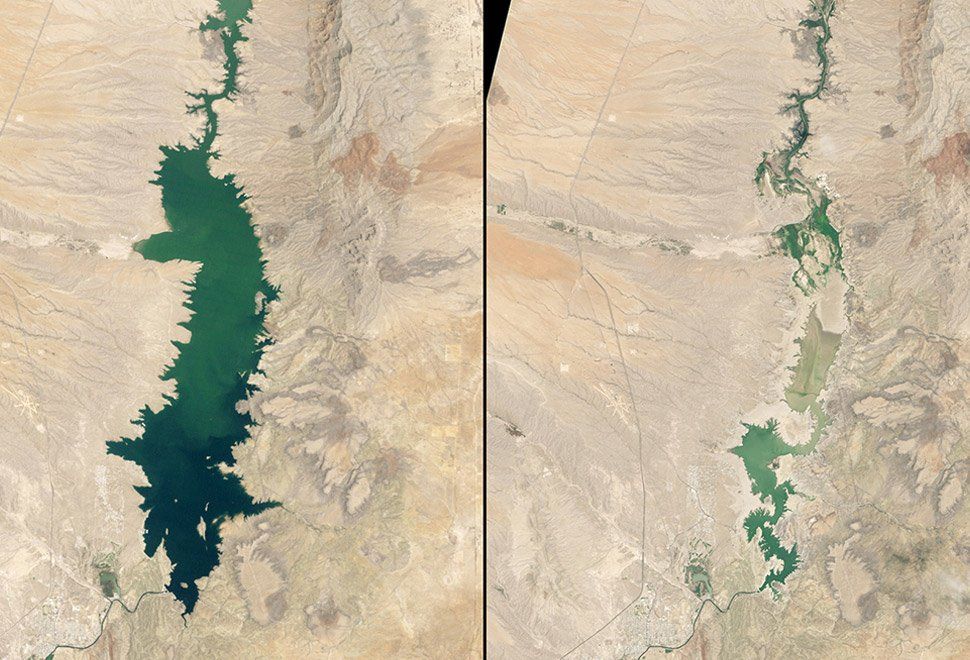 Claro ejemplo de cómo ha aumentado la sequía en Arizona y Utah (Estados Unidos). A la izquierda, el río que nutre al lago Powell por el norte en 1999. A la derecha, el mismo lugar en 2014