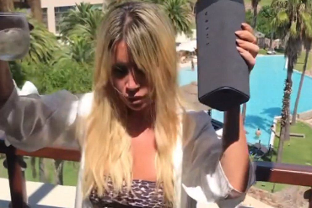Si bien la música no era reggaetón, Flor tiró unos cuantos pasos ataviada con una bikini diminuta animal print y una camisa larga. Cuando se filmaba frente al espejo del baño giró la cámara de su teléfono y encuadró a su pareja Ramiro Ponce de León. El hombre tomaba un baño de espuma usando lentes de sol y se tentó de risa cuando vio que Peña lo grababa y se reía a carcajadas.
