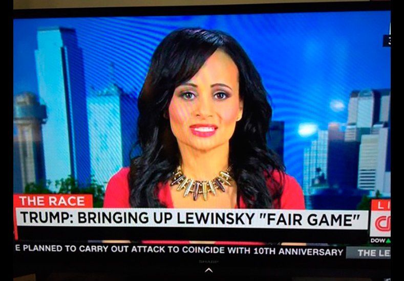 Katrina Pierson, vocera del precandidato republicano Donald Trump, ofreció una entrevista a CNN, en la cual llamó la atención por el collar de balas que utilizaba.