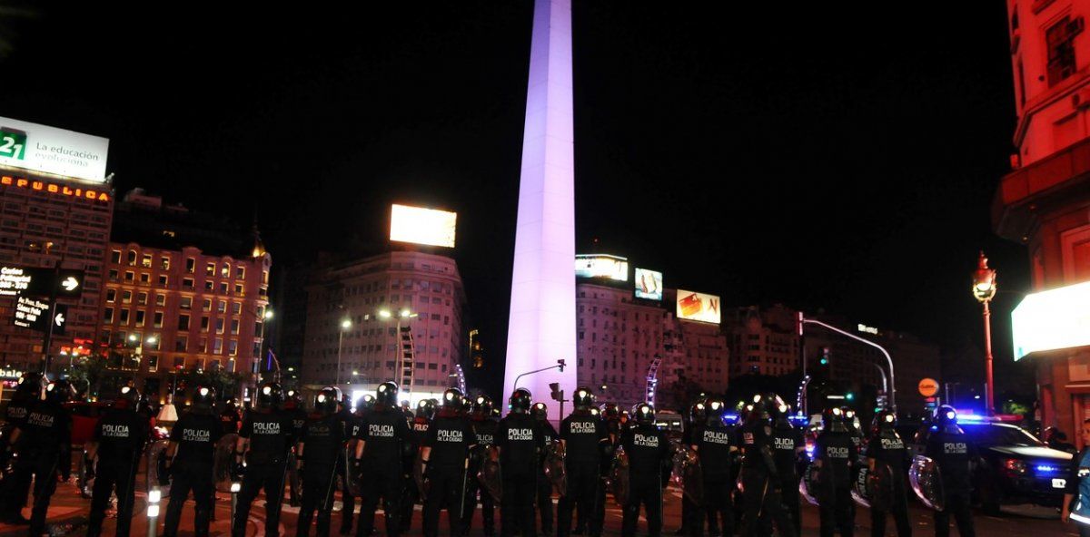 Desde Libertad y Cerrito, la Policía dispersó a los hinchas por avenida 9 de Julio y sus laterales (Cerrito y Carlos Pellegrini) hacia el sur. A las 0.45, la zona del Obelisco ya estaba desalojada.