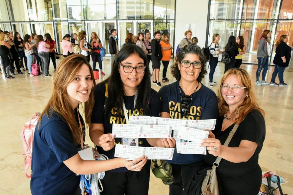 Cecilia, Barbarita y Marisa, del Club de Fans Oficial de Carlos Rivera están primeras en la fila para comprar sus entradas. "Estamos desde ayer a las 10 de la mañana esperando para comprar las entradas". Desde hace 6 años se conocen y este año van a cumplir el sueño de ver a Carlos Rivera en escena. "La expectativa es grande porque aparte del show de Carlos Rivera estamos esperando conocer el Complejo Ferial Costanera y ver la nueva propuesta de la Fiesta Nacional del Sol".