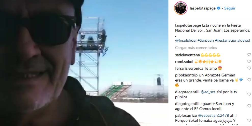 La banda llegó por la tarde al predio de Chimbas para probar sonido. Germán Daffunchio, mostró en sus redes un poco el lugar donde por la noche tocarán. El Escenario del Sol arrancará desde las 21, con la presentación de Kiryios Folk, Mamá Perfecta, a las 22 será el turno de Los Guasones, luego Caelux y finalmente Las Pelotas.