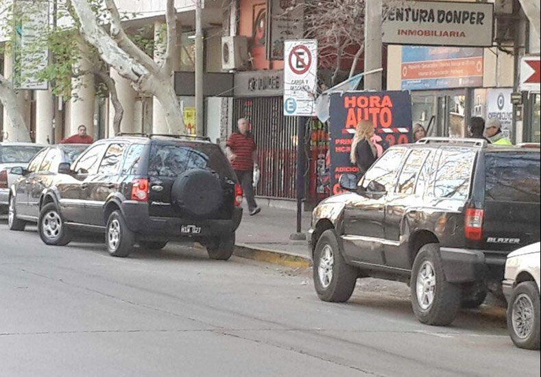Una maniobra imprudente terminó con un accidente que pudo ser tragedia. Ocurrió en la mañana del jueves en la puerta de la Galería Estornell (Santa Fe entre Mendoza y General Acha). Una camioneta Eco Sport se mal estacionó en una zona de “carga y descarga”, pintada con amarillo, a centímetros de un cartel de “prohibido estacionar”.