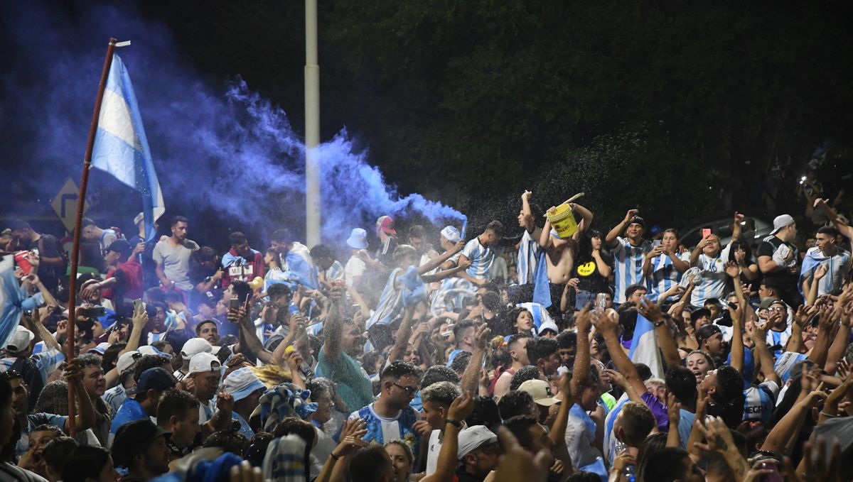 En esta madrugada, otra muchedumbre ya está plantada en el Obelisco para esperar la llegada de la Selección sobre el mismo ómnibus descapotable ploteado para el festejo.
