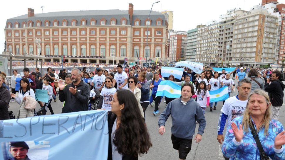 Familiares, amigos y vecinos marplatenses marcharon desde la Base Naval de Mar del Plata para pedir por la búsqueda y rescate de los tripulantes del submarino ARA San Juan y reclamaron la presencia del presidente Mauricio Macri "para que los acompañe y les dé palabras de aliento".