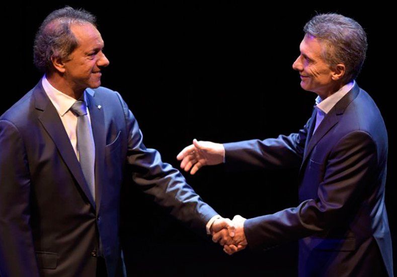 "Al entrar al escenario, Macri tomó la iniciativa del saludo con palmadas sobre la espalda de Scioli, lo que constituye un gesto amistoso, pero también dominante. Al final volvió a realizar el mismo gesto como despedida, marcando que es él el que define los términos de la relación", consideró el doctor en Ciencias de la Comunicación Social y licenciado en Antropología, para quien "desde el mismo comienzo Macri y Scioli mostraron una diferencia actitudinal básica, ya que el candidato de Cambiemos contestó al saludo de buenas noches del moderador Marcelo Bonelli, mientras que Scioli no lo hizo".Y señaló: "El principal componente que puede observarse sin recurrir a la observación repetida del video es la diferencia paralinguística: la dicción de Macri fue definitivamente más clara y su ritmo de enunciación no tuvo pérdida de fluidez, mientras que Scioli perdió la fluidez en muchas ocasiones, hablando en forma entrecortada, haciendo pausas más largas entre cada palabra, lo que representa una una carga cognitiva mayor, es decir, que Scioli tuvo que hacer un mayor esfuerzo mental que Macri para enunciar sus ideas, formular preguntas y responder. Macri tuvo una mejor modulación de la entonación con cambios más melódicos, mientras que Scioli se comió las eses, y tuvo varios furcios. El líder del PRO tuvo mejor timing, ya que terminaba sus frases justo cuando se le acababa el tiempo, mientras que a Scioli los moderadores tuvieron que interrumpirlo en varias ocasiones por pasarse del tiempo establecido".