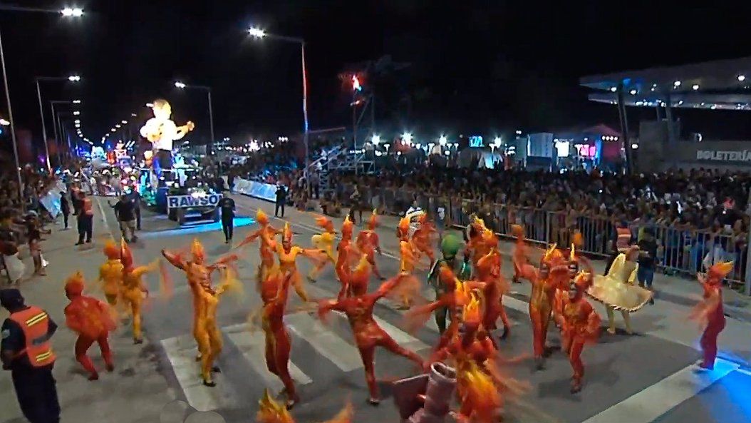 En Rawson, otra comparsa avanza por sus veredas y calles. El negro Villavicencio y los personajes fantásticos de sus canciones, acuden al llamado de la serenata se verá en su carruaje departamental.