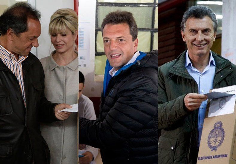 El líder de la ola naranja se dirigió a todos los argentinos atraves de algunos medios y dijo que no dejen de lado el derecho de votar, y ante la pregunta insistente por parte de los medios presentes en el lugar a si mantuvo comunicación con Cristina Fernández de Kirchner, el gobernador bonaerense prefirió no contestar.Por su parte el Jefe de Gobierno porteño al igual que los otros candidatos presidenciables fue acompañado con su mujer Juliana Awada. Macri llegó a la mesa con una docena de facturas. "¡Qué amarrete!", le gritaron desde el fondo. Entre risas, el precandidato presidencial se defendió: "Hay cuatro autoridades en la mesa, son tres facturas por cabeza, ¿cómo me van a decir amarrete?". Después de saludar al presidente y fiscales de mesa habló con los medios de comunicación y resaltó la alegría que tiene la gente.