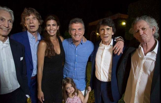 El presidente Mauricio Macri recibió esta noche en un encuentro privado a los integrantes de la banda británica de rock The Rolling Stones en su quinta particular 'Los Abrojos' que posee en el municipio bonaerense de Malvinas Argentinas. En 1995, hace 21 años, Carlos Saul Menem se sacó la foto con la mítica banda.