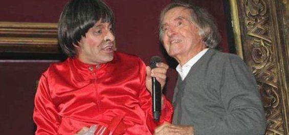 Carlitos Balá, junto a su familia, fue a ver a Martin Bossi en "Bossi Big Bang Show 2016" en el teatro Astral y se emocionó con el homenaje que le hizo el imitador en uno de sus números.
