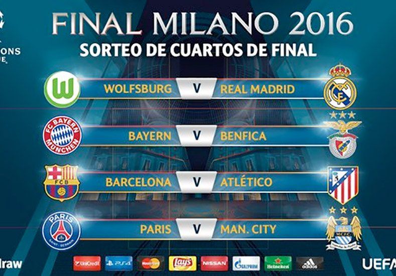 Las semifinales están programadas para el 26/27 de abril y 3/4 de mayo, mientras que la final, que pondrá el punto final a la temporada de clubes en Europa, se jugará el 28 de mayo en Milán.El sorteo de este viernes en Nyon, sede de la Unión Europea de Fútbol Asociado (UEFA), fue puro, es decir, sin cabezas de serie. Cualquiera podía enfrentarse con cualquiera.La suerte impidió, al menos de momento, duelos de gran tensión, como el superclásico español Real Madrid-Barcelona, o de mucho morbo como un Bayern Munich – Manchester City, que habría enfrentado al actual y futuro equipo del entrenador estrella Josep Guardiola.Télam