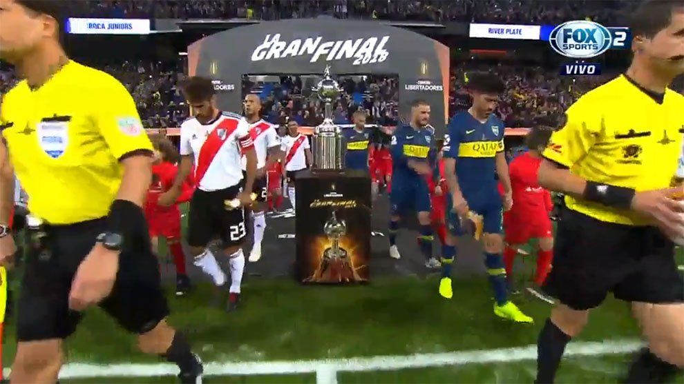 San Juan 8 > Ovación > Histórica Copa Libertadores 09 de diciembre de 2018 - 16:28 Momento emotivo: así se vivió el ingreso de los equipos y el himno en la casa del Real River y Boca pisaron el césped del Bernabéu y explotaron las tribunas. Hinchas de ambos equipos respetaron y se emocionaron con el himno nacional.