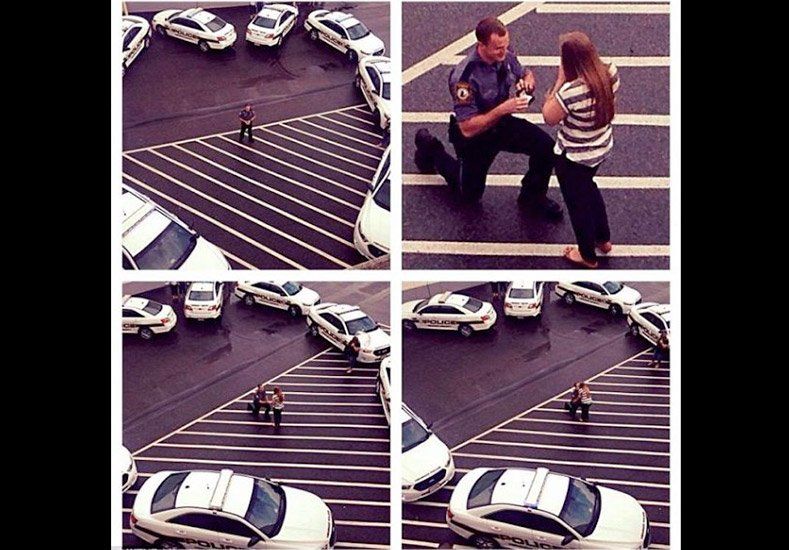 Un oficial de policía de Virginia se le ocurrió una forma muy particular de proponerle casamiento a su novia: la encerró en un gran corazón de patrulleros.