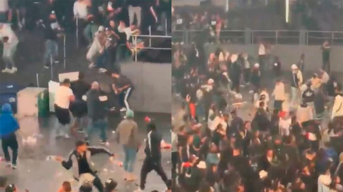 Las imágenes que se viralizaron en las redes muestran la brutal situación: barras de distintos equipos de fútbol comenzó a discutir, luego hubo golpes y se revolearon diferentes objetos.