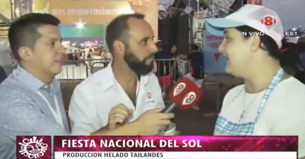 San Juan 8 > San Juan > Fiesta Nacional del Sol 2019 21 de febrero de 2019 - 22:12 Nicolás se animó a degustar el novedoso helado tailandés Capellino cató el helado del camarógrafo, Claudio Pantuso, y aseguró que "está bárbaro". Buscá el stand en el Costanera Complejo Ferial de la FNS 2019.
