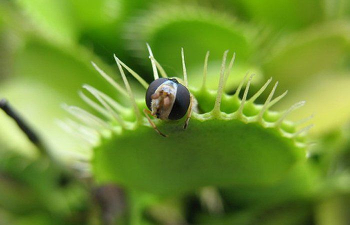 Un primer contacto con el pelo sensor no es suficiente para cerrar la trampa (podría ser una falsa alarma), pero sirve para ponerse alerta. Un segundo contacto en menos de 30 segundos, y el órgano de captura se cerrará sobre su presa.
