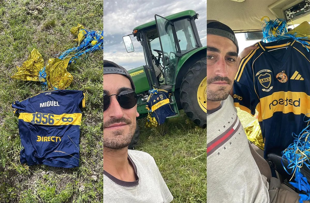 “Increíble. De la Boca a Soriano, Uruguay. La remera de Miguel Russo cayó en tierras de Cañada Nieto, Soriano. Un vecino de esa zona tomó foto al hallazgo de la camiseta en suelo uruguayo”, escribió junto a una imagen de la prenda y los globos desinflados.
