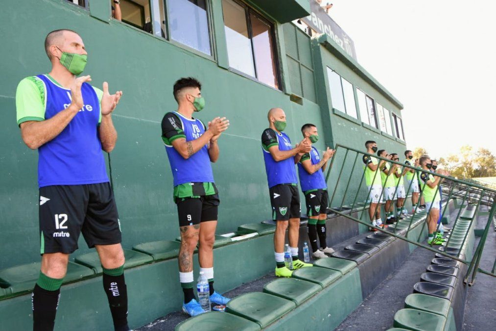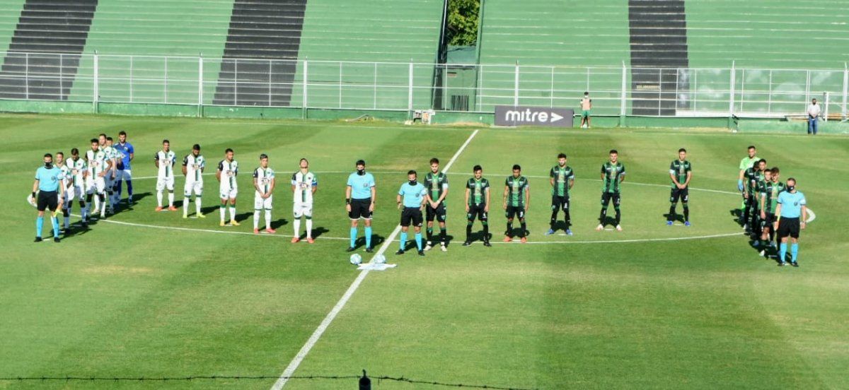 Los jugadores de San Martín y Nueva Chicago formaron una letra M en el centro del campo de juego, mientras se desarrollaba el minuto de silencio que se cumplió ante la presencia sólo de periodistas y dirigentes.