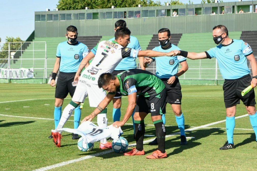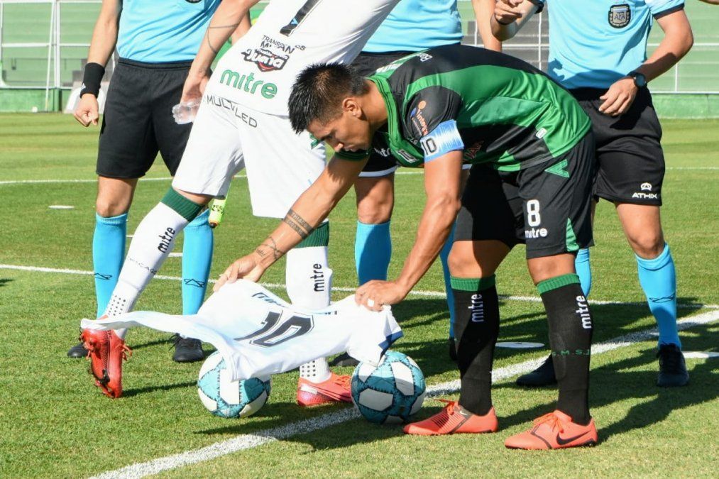 Nicolás Pelaitay, capitán de San Martín, llevó una cinta de capitán especial con dedicatoria para el 10. El oriundo de 9 de Julio también mostró una camiseta de la Selección argentina con el Nº10 que estuvo presente en la foto del equipo.