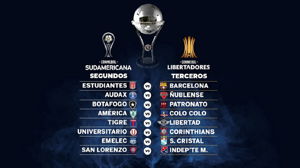 Los repechajes entre los ubicados terceros en las ocho zonas de la fase de grupos de la Copa Libertadores y los segundos de la Sudamericana jugarán por primera vez en la historia de las competencias Conmebol por un lugar en los octavos de final de este último certamen.