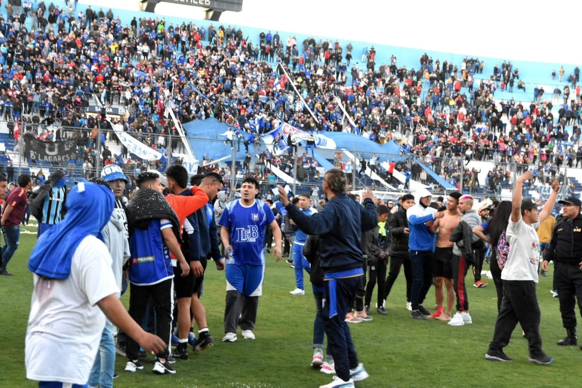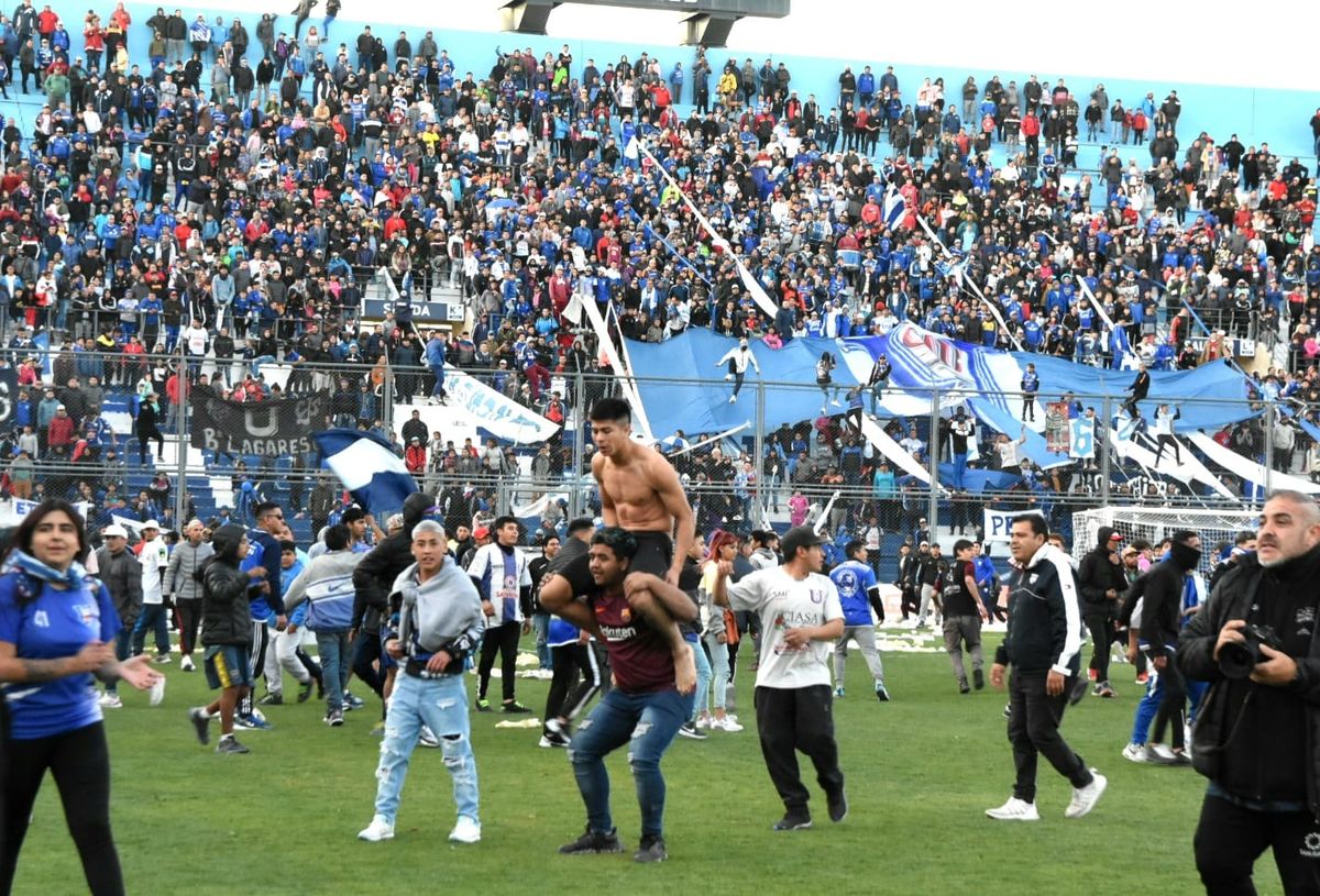 Sin embargo, el festejo del Azul se vio empañado cuando el campo de juego del Estadio del Bicentenario se convirtió en el escenario de una batalla campal entre hinchadas.