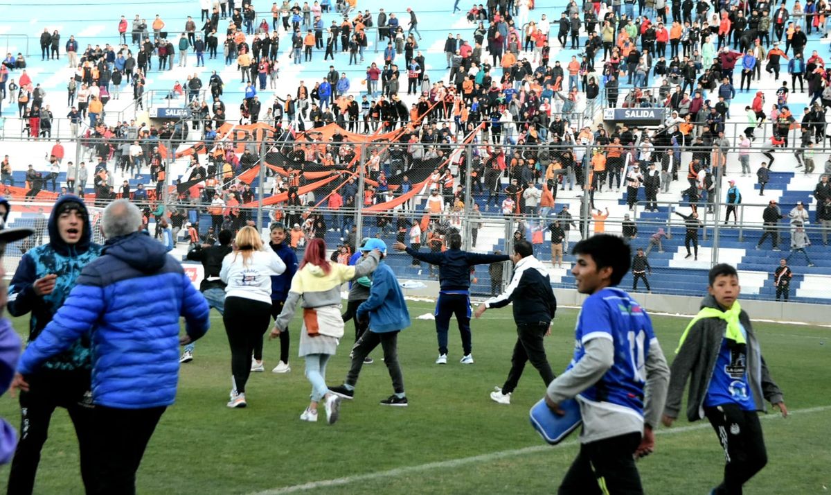 Las versiones preliminares indicaron que un jugador de Aberastain fue golpeado. Además, hubo detenidos por los disturbios.