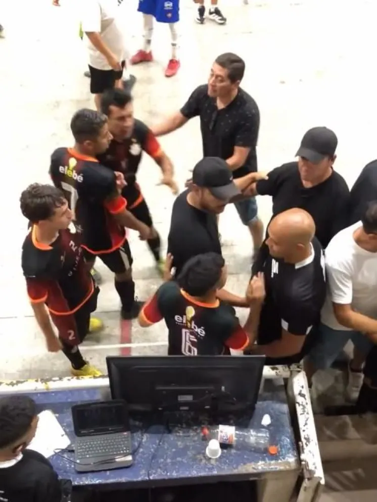 Lejos de terminar en festejos, el cierre del partido derivó en un violento episodio. Jugadores y allegados de Batistella reaccionaron con furia y fueron directamente contra el árbitro Sabal, reclamándole su actuación.