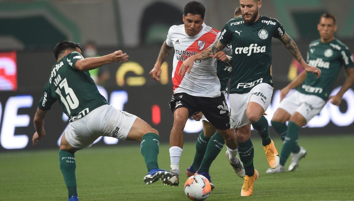 Sin embargo con 10 hombres River siguió yendo y dominando a un Palmeiras que en la previa fue respaldado por sus hinchas en las inmediaciones del Allianz Parque y adentro colocó banderas con símbolos que daban cuenta de haber ganado anticipadamente esta edición de la Libertadores.