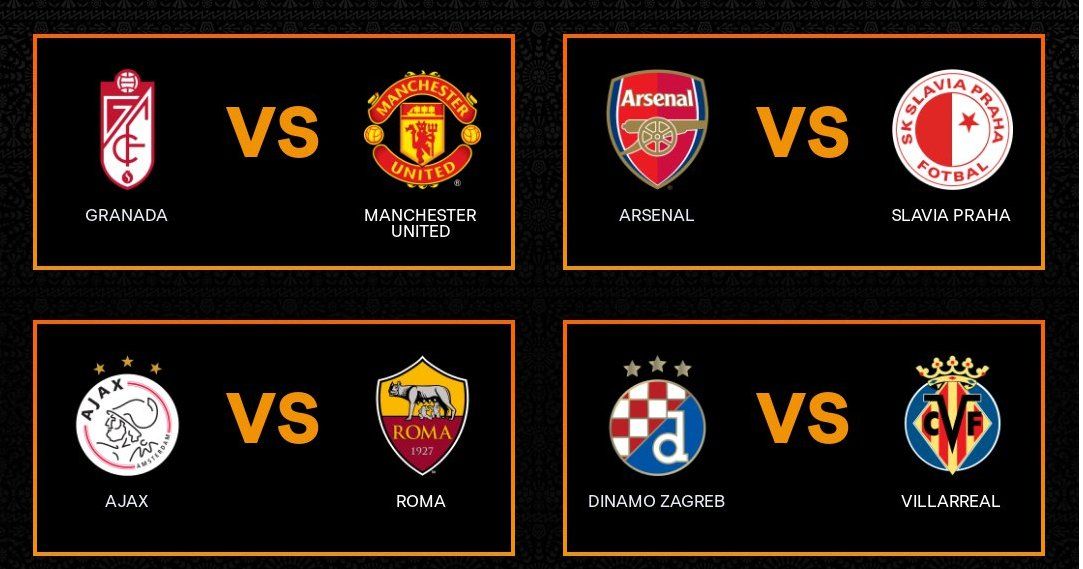 En semifinales deberán enfrentarse el ganador de Granada-Manchester United ante el de Ajax-Roma, mientras que el vencedor de Arsenal-Slavia Praga lo hará ante el triunfador de Dínamo Zagreb-Villarreal.