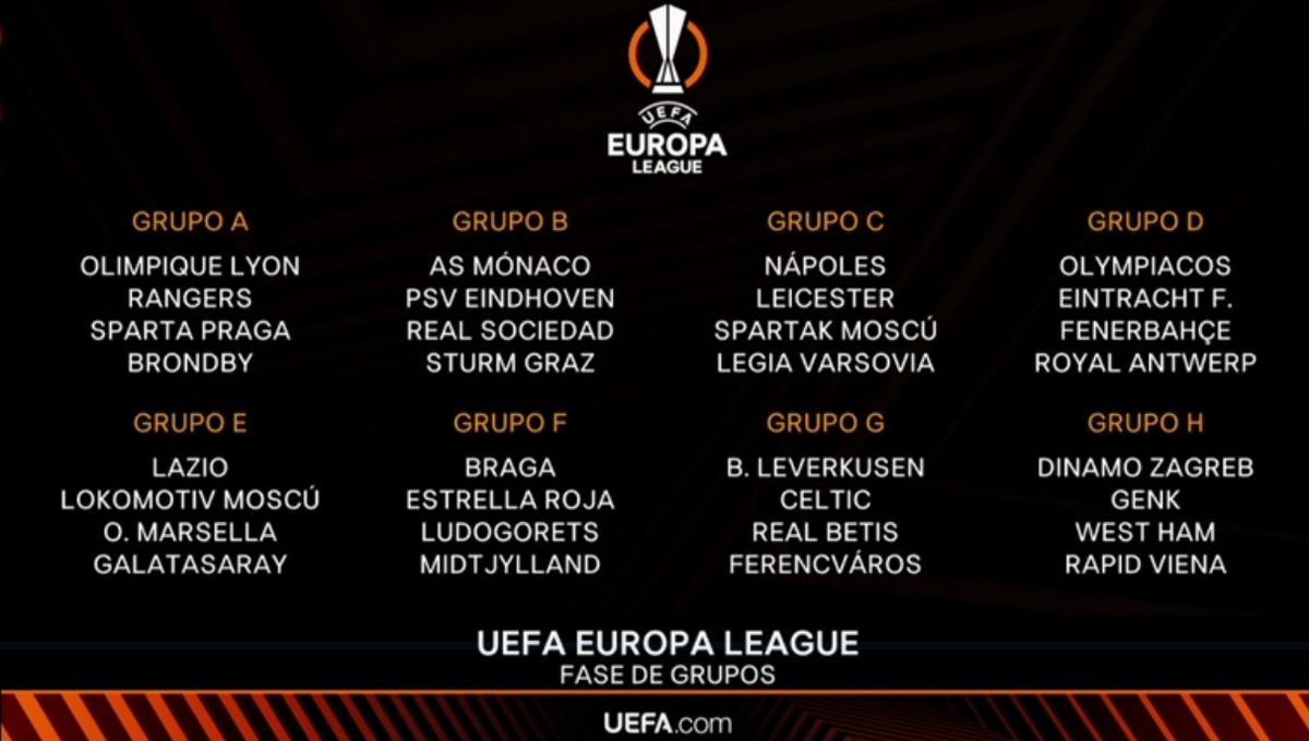 Los grupos de la Liga de Europa entonces son los siguientes: