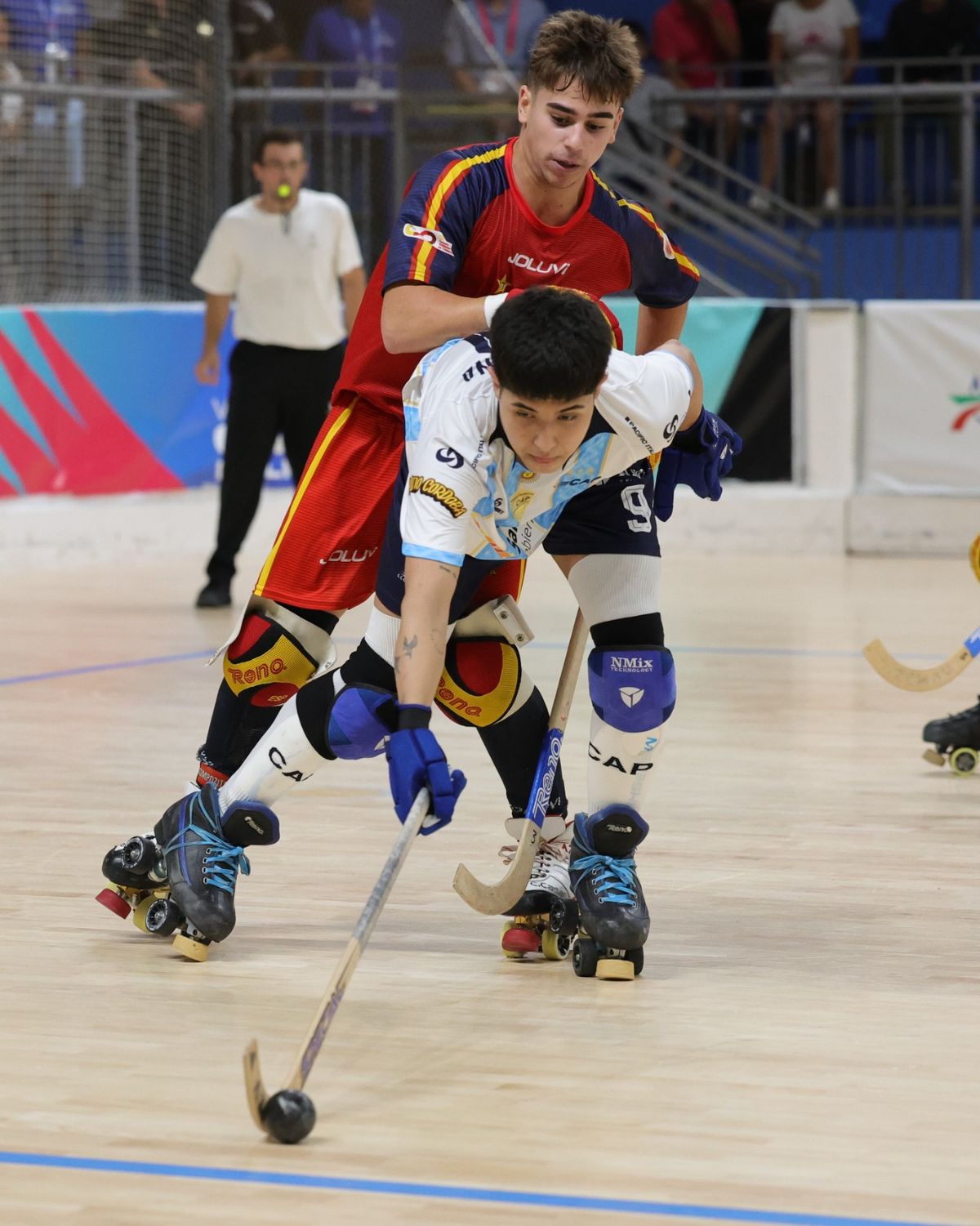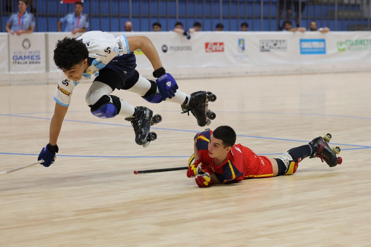 La Selección argentina Sub-19 masculina de hockey sobre patines perdió el invicto en el Mundial de la categoría que se desarrolla en el marco de los World Skate Games. Argentina perdió 5 a 3 con España en el cierre de la fase de grupos y terminó en el segundo lugar de la zona A.