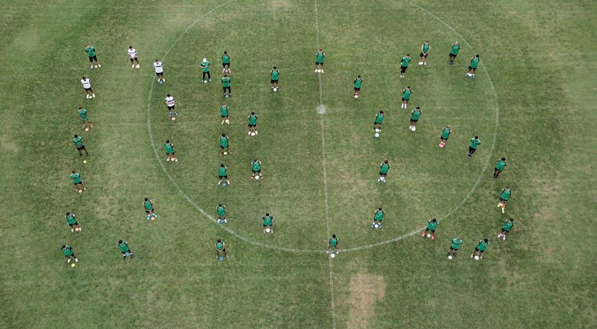 El mundo del fútbol sigue conmocionado por la muerte de Diego Armando Maradona y con el correr de las horas, se multiplican los homenajes y tributos que se le rinden a quien fuera catalogado como el mejor futbolista de todos los tiempos. El plantel de San Martín no fue la excepción y hoy, en el entrenamiento vespertino, los dirigidos por Pablo Ferrari, a horas del debut en la nueva temporada de la Primera Nacional, decidieron ubicarse en el césped del Hilario Sánchez de manera tal que formaban la palabra "Dios".
