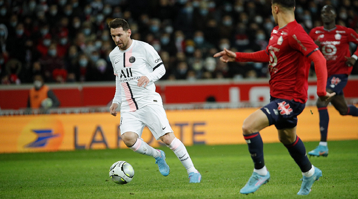 Paris Saint Germain, líder de la Ligue 1 de Francia de fútbol, con un destacado Lionel Messi, autor de un gol, y con sus compatriotas Ángel Di María (se retiró lesionado) y Leandro Paredes, goleó hoy como visitante a Lille, último campeón, por 5 a 1, sumó su tercera victoria consecutiva y se distanció a 13 puntos de su inmediato perseguidor, Olympique de Marsella, del DT santafesino Jorge Sampaoli, en el cierre de la 23ra. fecha.