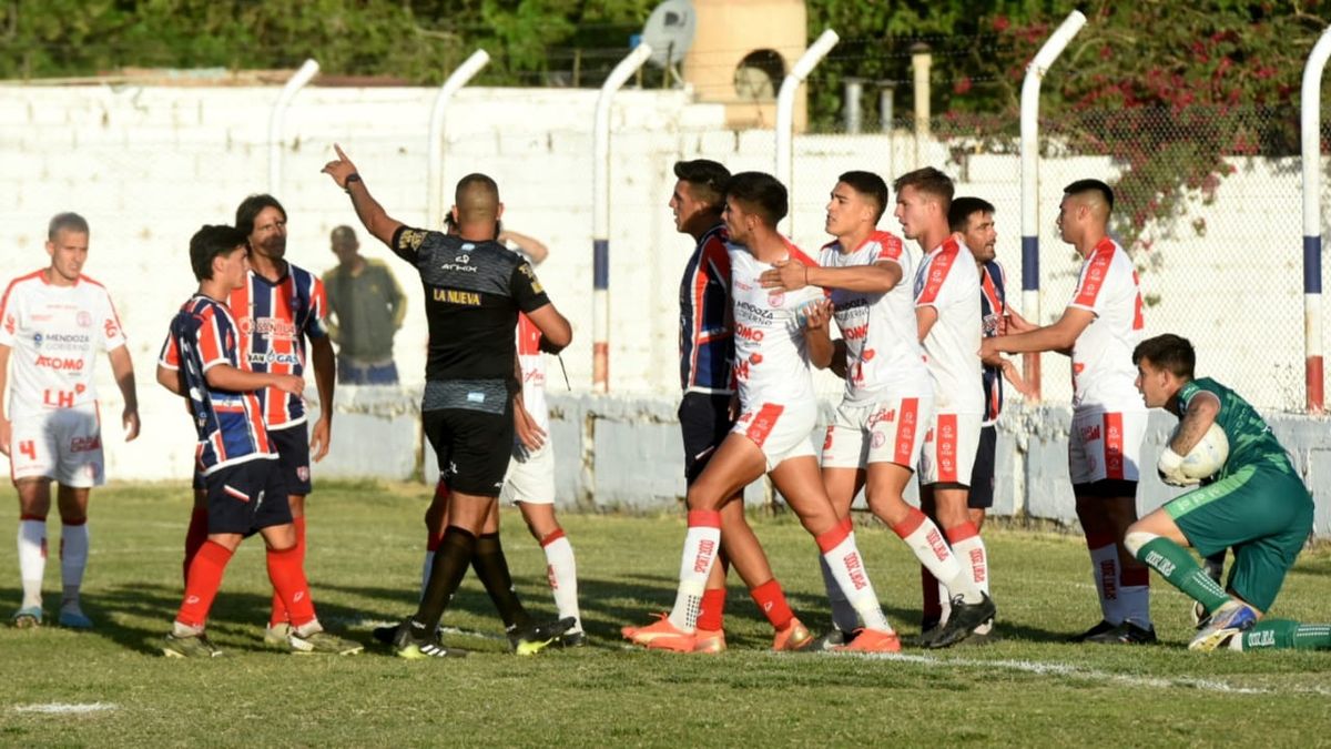 En un partido áspero, atravesado por los nervios y el mal humor por los resultados obtenidos en esta temporada, el equipo de Chimbas fue vencido por 2-1 en su casa, por la fecha 35°. En esta oportunidad, los goles fueron concretados por Bruno Barrionuevo (10') y Javier Peñaloza (38' del complemento) por el visitante y de Javier Gil Casares (17' del segundo tiempo) para el local.