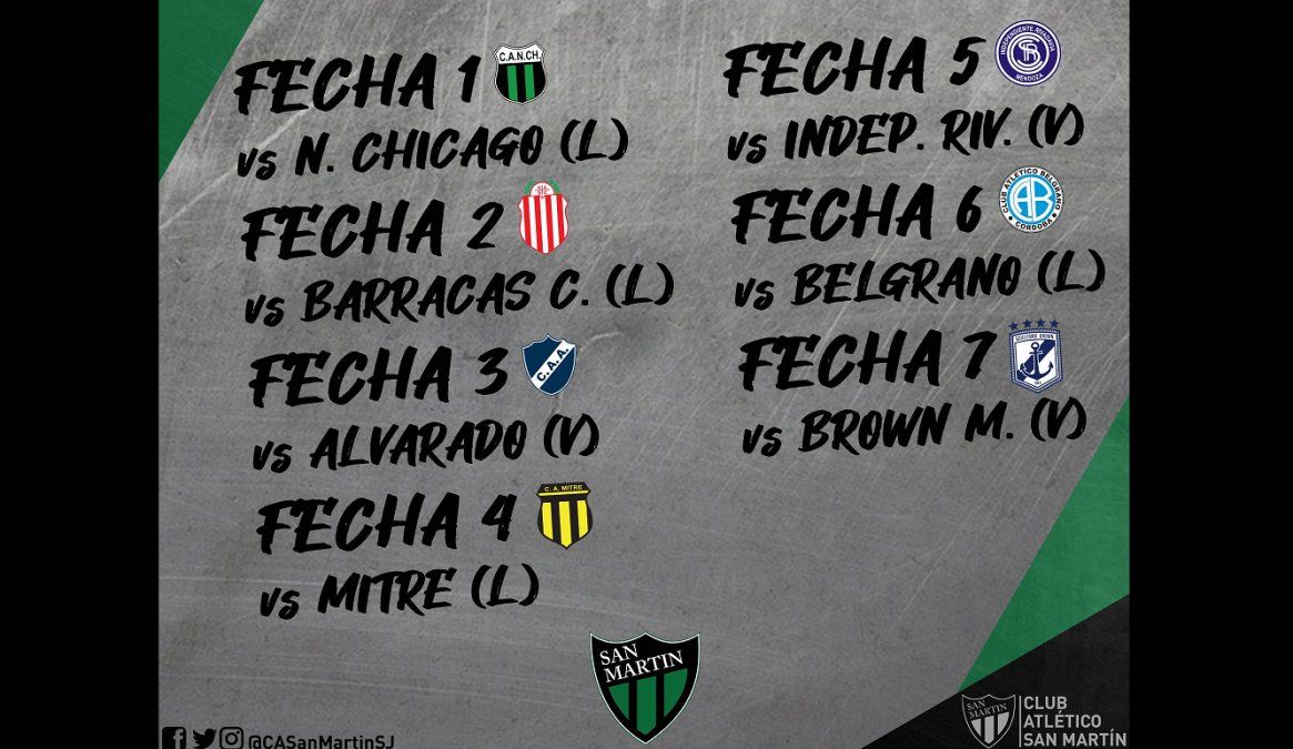 Los partidos de visitante de San Martín serán en Mar del Plata, Puerto Madryn y Mendoza. Tendrá un viaje corto para jugar con Independiente Rivadavia (170km) y dos largos para enfrentarse ante Guillermo Brown (1700km) y Alvarado (1400km).