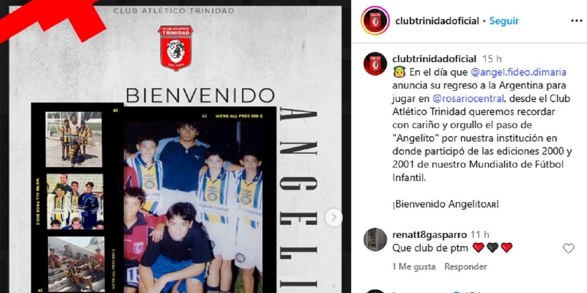 En el día en que Ángel Di María confirmó su regreso al fútbol argentino, el Club Atlético Trinidad compartió un emotivo mensaje recordando el paso del campeón del mundo por sus instalaciones durante su niñez.