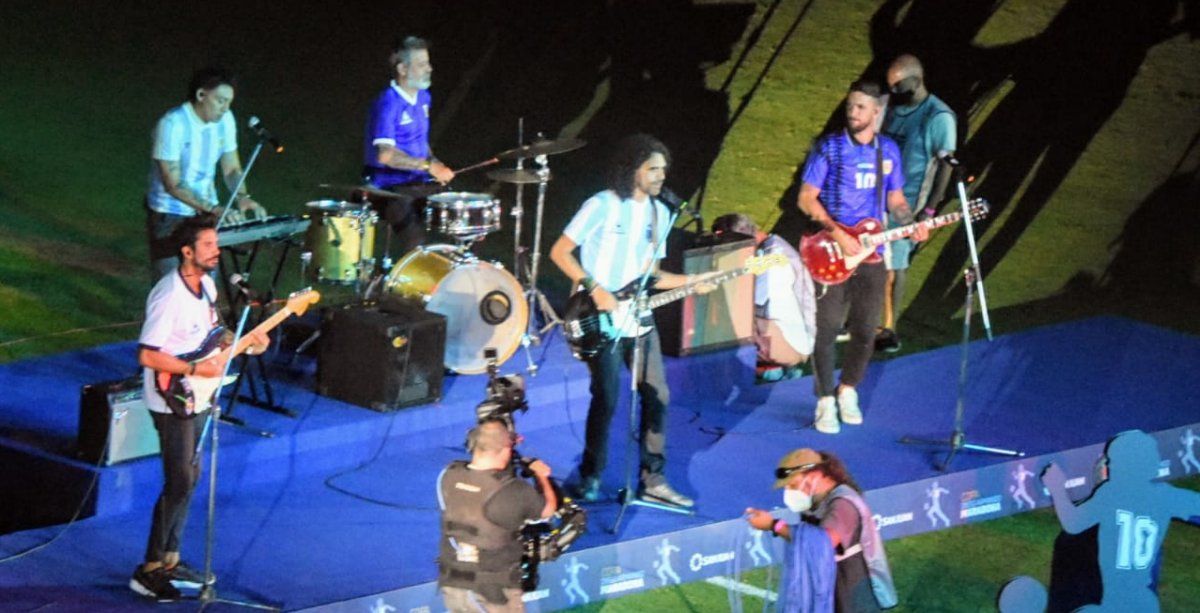 Héctor Bracamonte, Marcos Angeleri, Gonzalo Rodríguez, Pablo Bezombe y Pablo Lugüercio se transformaron en una banda para entonar “La Mano de Dios”, la canción que popularizó Rodrigo.