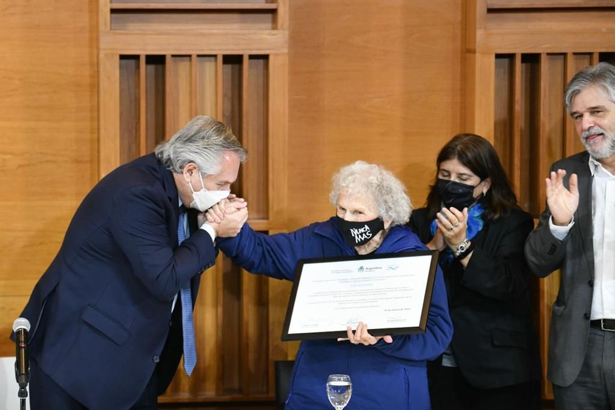 En el escenario, junto a Fernández, Filmus y Pietragalla Corti, estuvieron la titular de Familiares de Desaparecidos y Detenidos, Angela “Lita” Paolin de Boitano; la representante de Madres de Plaza de Mayo-Línea Fundadora, Taty Almeida y la presidenta del CONICET, Ana Franchi.