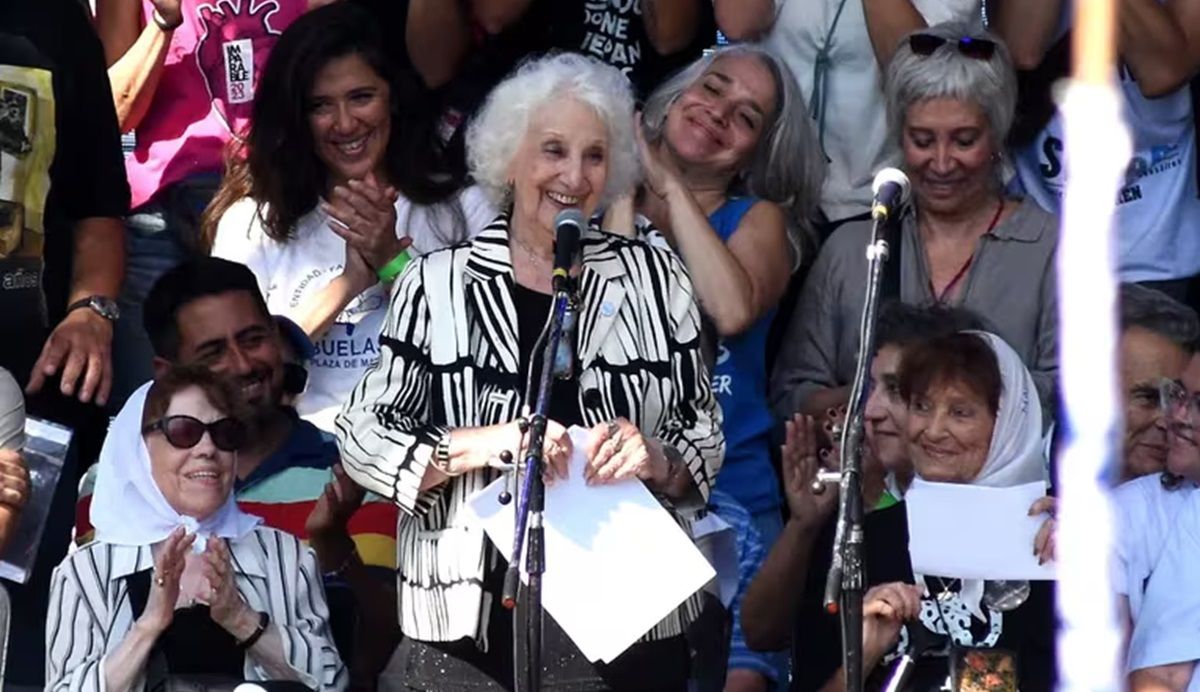 Y preguntó: “¿Dónde están los nietos y nietas que buscamos las abuelas, que buscan sus hermanos, hermanas, sus familiares? ¿Dónde están frente a ese gobierno que pretende restablecer la teoría de los dos demonios y reivindica el terrorismo de Estado?”.
