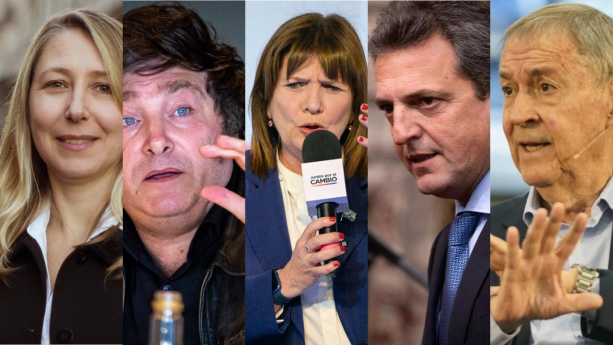 Quienes irán a las urnas son: Javier Milei, representando a La Libertad Avanza; Patricia Bullrich, candidata de Juntos por el Cambio; Sergio Massa, postulándose por Unión por la Patria; Juan Schiaretti, del partido Hacemos por nuestro país; Myriam Bregman, quien representa al Frente de Izquierda-Unidad.