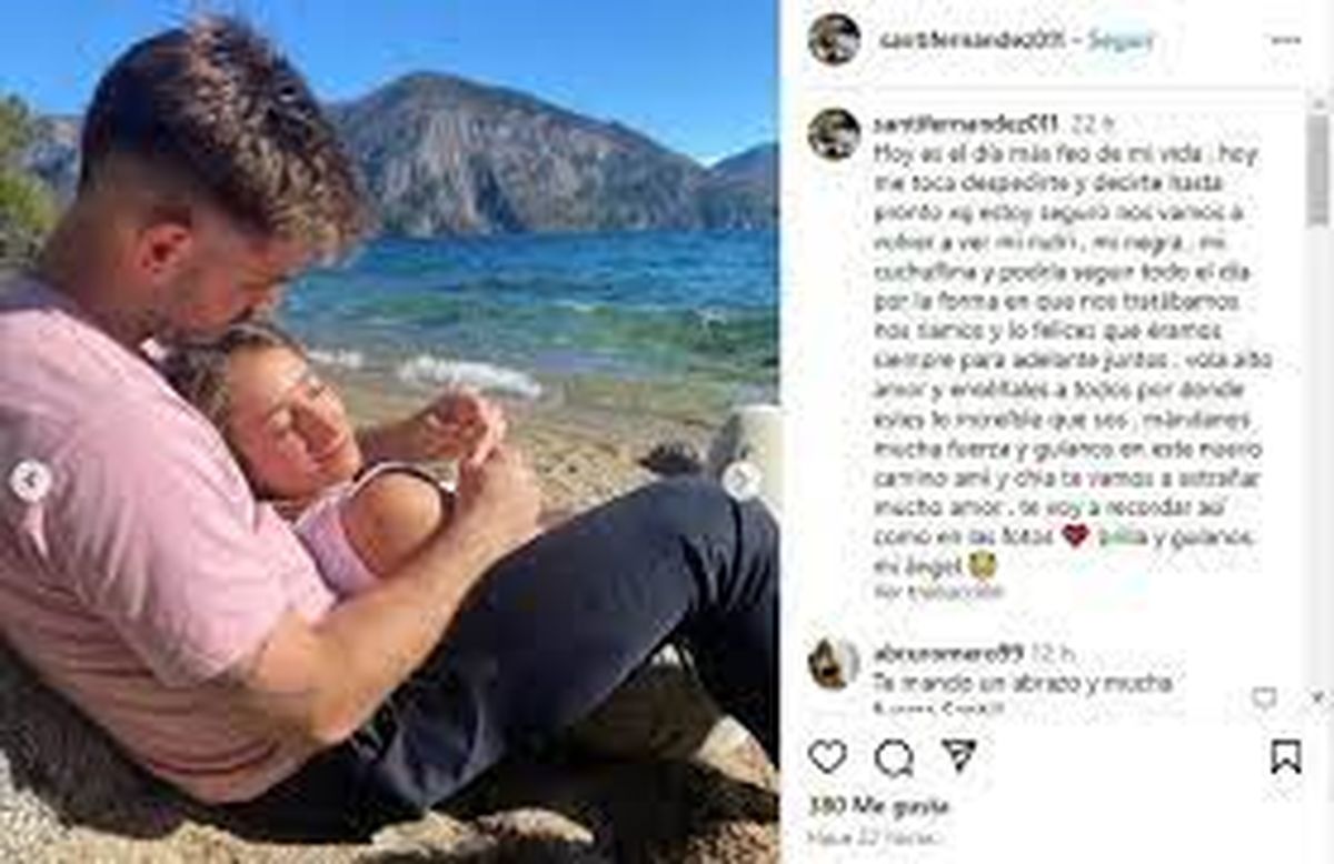 En la publicación, que está acompañada por ocho fotos de ambos, siguió: “Volá alto, amor y enséñales a todos por donde estés lo increíble que sos. Mándanos mucha fuerza y guíanos en este nuevo camino. Te vamos a extrañar mucho amor, te voy a recordar así como en las fotos. Brillá y guianos, mi ángel”.