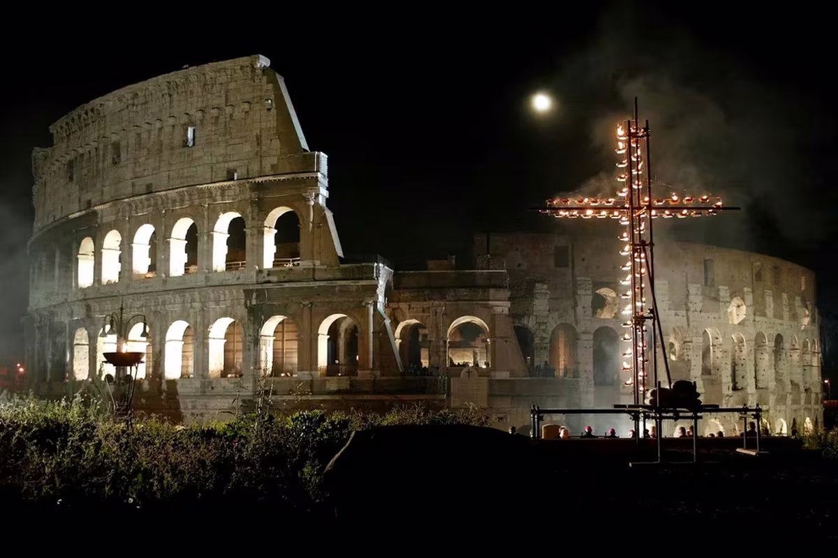 Después, Francisco se ausentó a último momento del “Vía Crucis” en el Coliseo, en la que los participantes recorrieron la antigua arena romana sosteniendo una cruz, recreando las últimas horas de Jesús y deteniéndose para rezar y escuchar meditaciones.