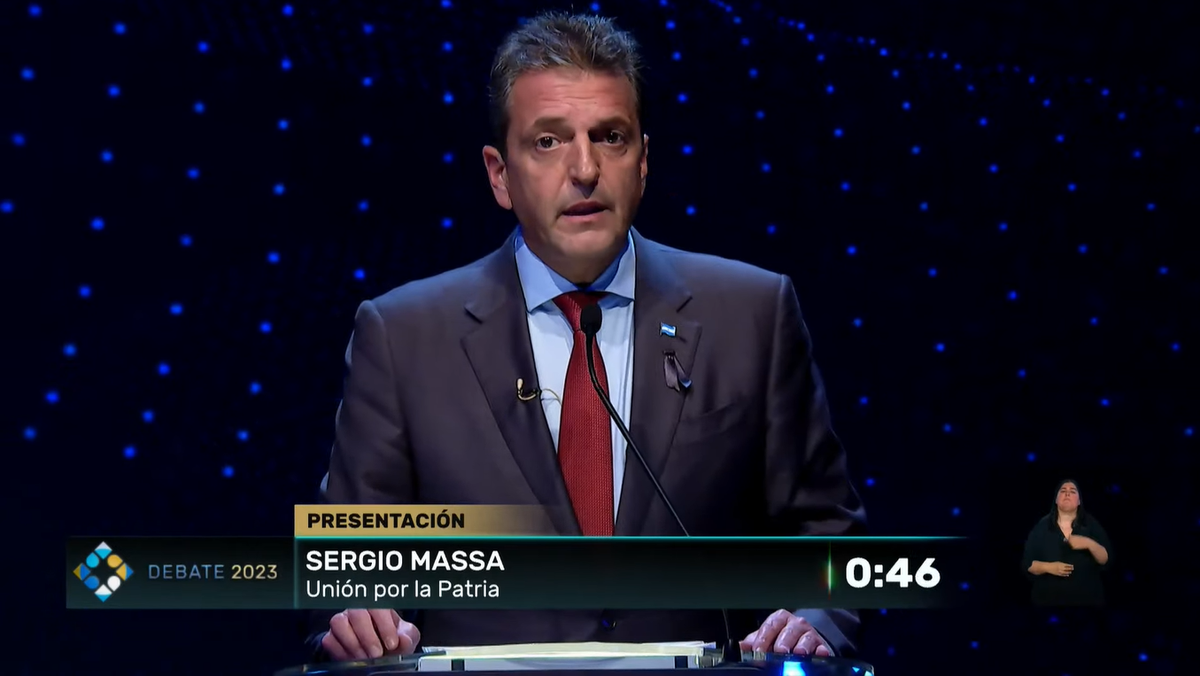 El candidato presidencial de Unión por la Patria (UxP), Sergio Massa, participó del segundo debate presidencial y pidió "contarle la verdad a la gente ya que los datos desmienten las mentiras" de la postulante Patricia Bullrich, en materia de seguridad, el primer eje temático del segundo debate presidencial.