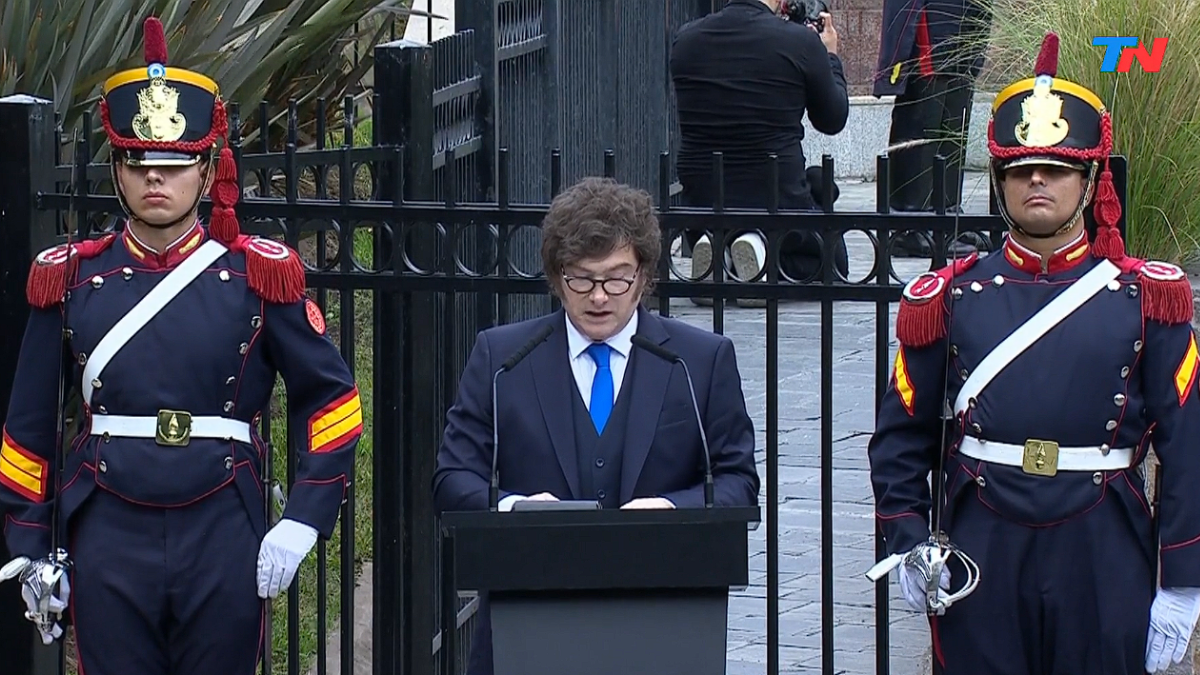 Milei dijo: “Como cada 2 de abril, estamos reunidos para recordar y honrar a aquellos que ofrecieron su vida por el valor supremo de la defensa de la patria. Esos héroes que han sabido encarnar la expresión más pura del espíritu nacional, la que surge en los momentos decisivos de la historia, sentando un precedente al que el resto de los argentinos solo podemos aspirar. A todos ellos extendemos nuestro eterno respeto y agradecimiento”.