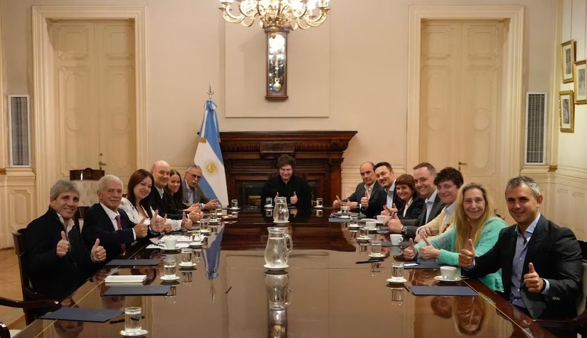 “Vamos a estar prácticamente todos”, confirmaba un importante funcionario que está ahora en la reunión. Todos llegaron prácticamente a horario, siendo el último en arribar el ministro de Economía, Luis Caputo, que tardó diez minutos en salir de su auto que estaba estacionado en frente de la explanada del Salón de los Bustos, por donde ingresan los funcionarios a la Casa de Gobierno.